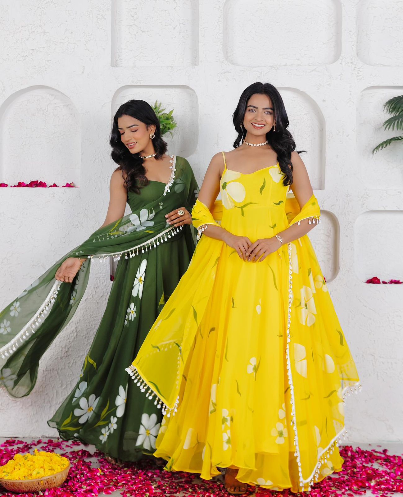Gown – floral printed organza anarkali 4.5 mtr flair